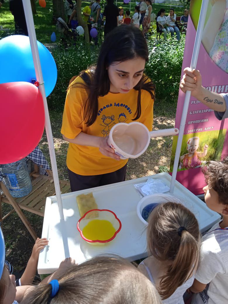 По молитвам Господь даровал отличную безветренную погоду в этот день, несмотря на неблагоприятный прогноз. Пока команда заканчивала свои последние приготовления, очень много деток с родителями уже зарегистрировались и с нетерпением ожидали отправления в путешествие по «Стране здоровья». В это время они могли посмотреть и сами поучаствовать в шоу огромных мыльных пузырей, которое продолжалось более трех часов!