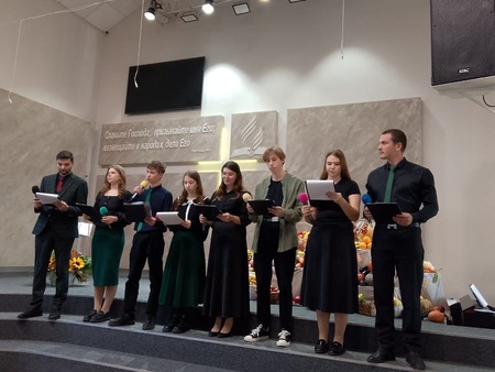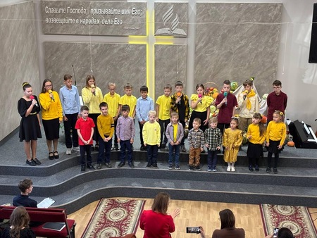 Дети, подростки и молодежь в этот день прославили Творца пением, стихами, сценкой и ансамблем колокольчиков.